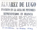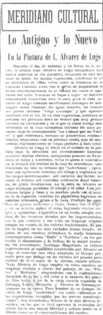 Mr. Alvarez de Lugo’s exhibition “is an index of his dedication to painting... his canvases are full of honesty and joy and his techniques insinuate his tremendous esthetic qualities